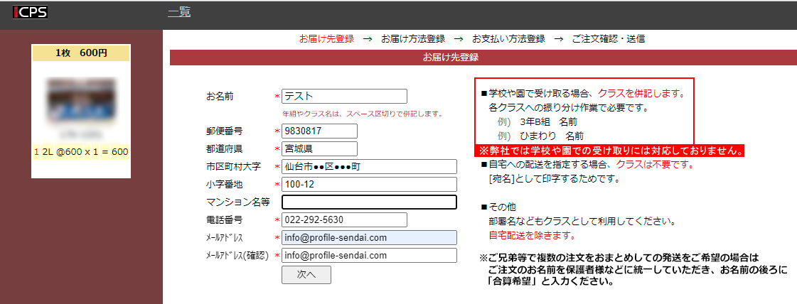 ※学校や園での受け取りには対応しておりません。