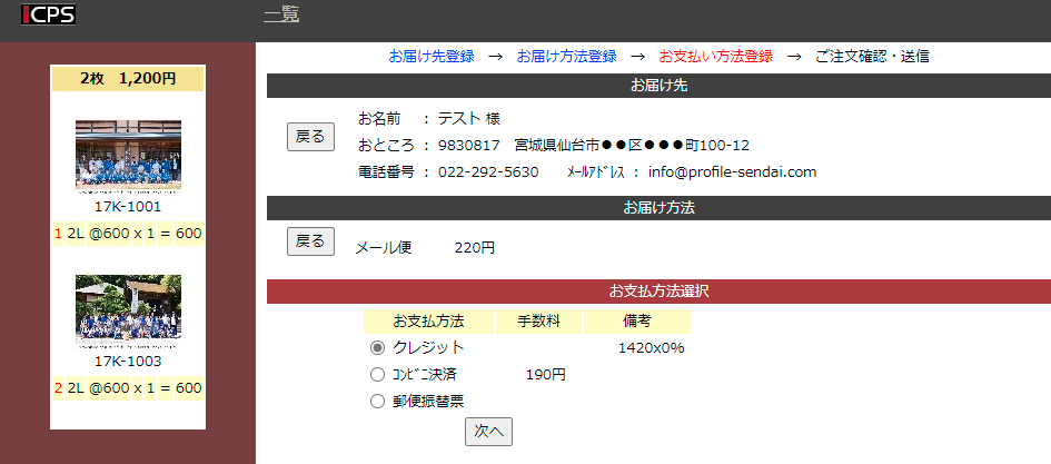 ※クレジットカード決済を選ばれた場合は、クレジットカード決済用リンクの入ったメールを送信します。